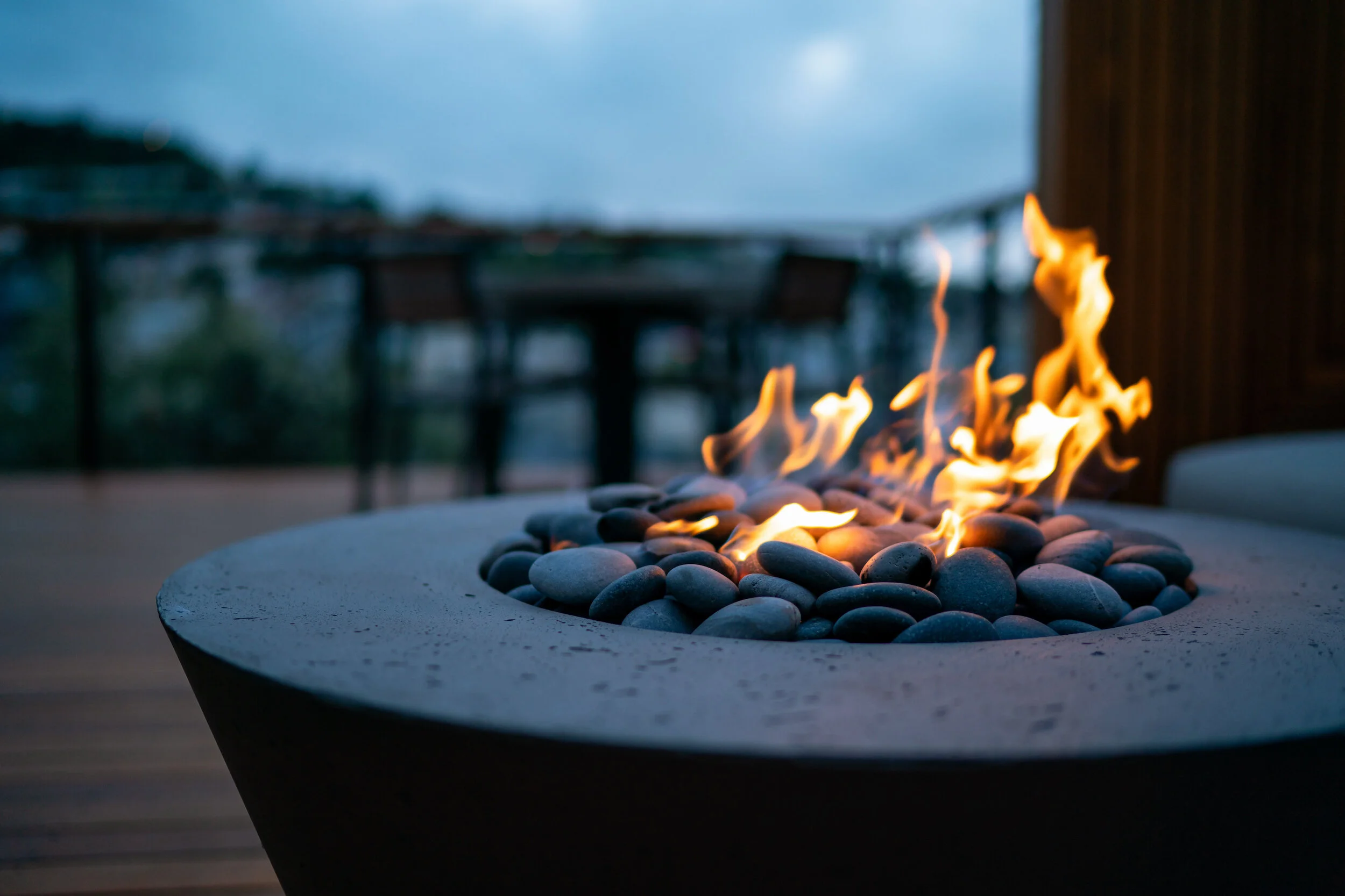 Full of broken concrete and two large Pine trees that dominated the yard, we began by removing the trees to open up expansive views to the west. A raised grade deck allowed for elimination of several steps and a smooth flow from upstairs to the deck area and into the lower level sliding door. Decorative Cedar panels provide shelter from prevailing winds for a small firepit area.